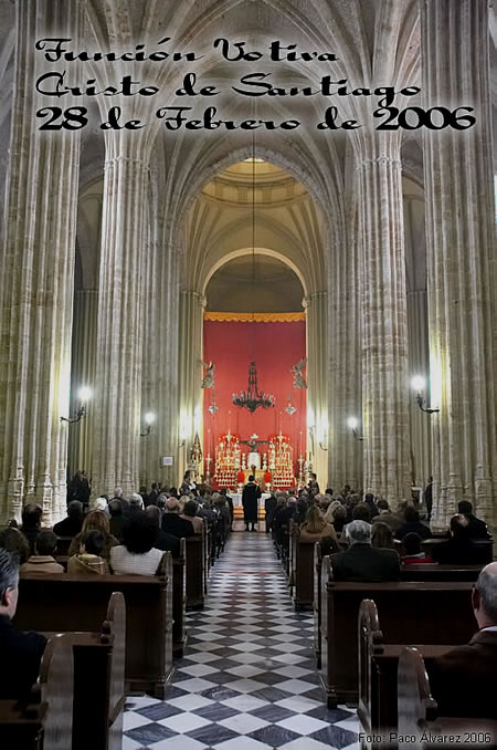FUNCIÓN SOLEMNE Como es tradición, el pasado 28 de Febrero de 2006, coincidiendo de la festividad del Día de Andalucía, se celebró en la Parroquia de Santiago el Mayor solemne Función Votiva en honor Stmo Cristo de Santiago, Patrono de Utrera. Además este mismo día coincidió tambien con el inicio de los cultos a Ntro Padre Jesús Redentor Cautivo, concretamente al primer día de Triduo. Se celebró la Función Principal de Instituto por el Reverendo Padre D. Alfonso Peña Blanco (Párroco de Constantina), estuvieron presentes autoridades Civiles, Militares y Eclesiásticas, representación de Hermandades de Utrera junto con la nuestra, Hermanos y feligreses, el acto estuvo acompañado por las magníficas voces y música del Coro Amistad de Utrera.