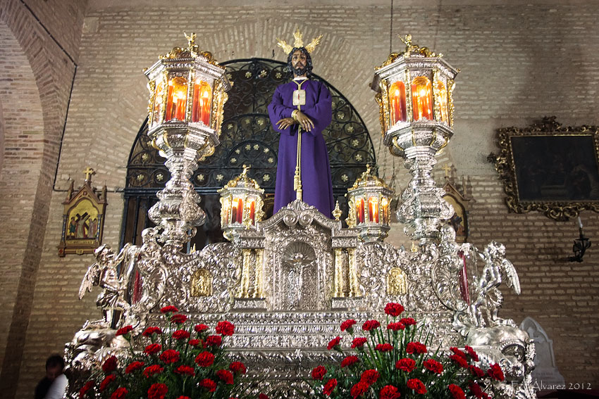 Cultos El pasado Viernes de Dolores, 30 de marzo a las 21 horas en la Parroquia de Santiago El Mayor de Utrera se realizo el traslado en parihuela a su paso de Ntro Padre Jesús Redentor Cautivo. Como desde hace ya algunos años, un mecanismo permite alzar lentamente a la sagrada imagen de Nuestro Señor a su paso. Gran cantidad de Fieles fueron testigos del traslado, los cuales pudieron admirar también el paso de Ntra Sra de las Lágrimas que también se encuentra ya en la Parroquia a la espera de la noche del Jueves Santo.
