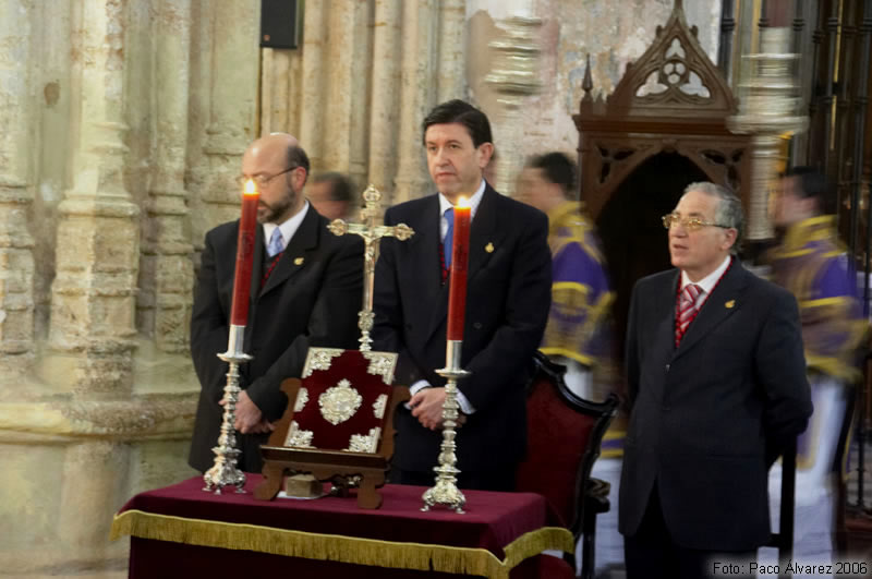 FUNCIÓN SOLEMNE Como es tradición, el pasado 28 de Febrero de 2006, coincidiendo de la festividad del Día de Andalucía, se celebró en la Parroquia de Santiago el Mayor solemne Función Votiva en honor Stmo Cristo de Santiago, Patrono de Utrera. Además este mismo día coincidió tambien con el inicio de los cultos a Ntro Padre Jesús Redentor Cautivo, concretamente al primer día de Triduo. Se celebró la Función Principal de Instituto por el Reverendo Padre D. Alfonso Peña Blanco (Párroco de Constantina), estuvieron presentes autoridades Civiles, Militares y Eclesiásticas, representación de Hermandades de Utrera junto con la nuestra, Hermanos y feligreses, el acto estuvo acompañado por las magníficas voces y música del Coro Amistad de Utrera.
