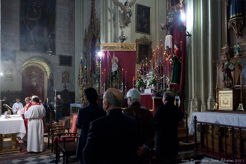 Función Solemne Posteriormente, el día 28 se celebro Solemne Función Votiva, ocupando la Sagrada Cátedra D. Antonio Mejías Vallejo, SDB del Colegio Salesiano Ntra. Sra. del Carmen de Utrera, acudieron los Hermanos Mayores de las diversas Hermandadades y Cofradías Utreranas, así como representantes de la autoridad local de Utrera y muchos fieles, el acto fue armonizado por el Coro de Cámara Nova Música de Cádiz.