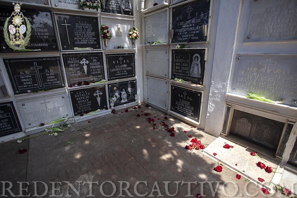 Ofrenda a los Hermanos Difuntos de la Hermandad El Domingo de Resurrección por la mañana (21/04/2019), al finalizar la Procesión Eucarística con su Divina Majestad bajo palio por los alrededores de la Parroquia de Santiago, la Junta de Gobierno y un grupo de Hermanos de la Hermandad Sacramental del Redentor Cautivo, se trasladaron al cementerio de Utrera. Un año más, se cumplía así con la piadosa tradición de ofrecer a los Hermanos difuntos las flores que adornaron los pasos de nuestros Sagrados Titulares durante la Estación de Penitencia del pasado Jueves Santo.