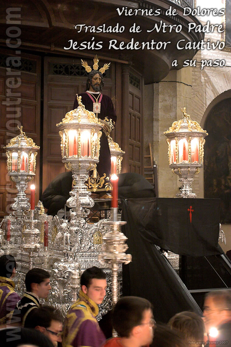 El pasado Viernes de Dolores 30 de marzo de 2007, fue trasladado a su paso Ntro Padre Jesús Redentor Cautivo, ya el año pasado se estrenó el mecanismo por el cual es elevado y colocado suavemente sobre el paso en su posición definitiva, en ese mismo traslado le fueron colocadas las nuevas potencias.