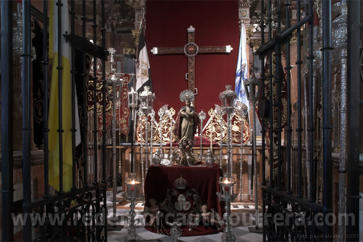 Precioso como han quedado expuestos este año los Enseres de la Hermandad