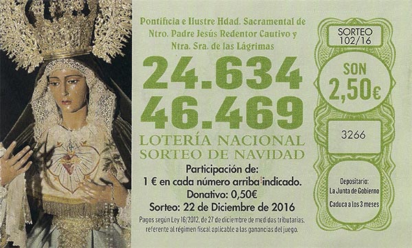 Lotería de Navidad de la Hermandad Disponemos en la Casa de Hermandad de participaciones de los números 64.827, 24.634 y 46.469 de la Lotería de Navidad para el sorteo del 22 de diciembre. |