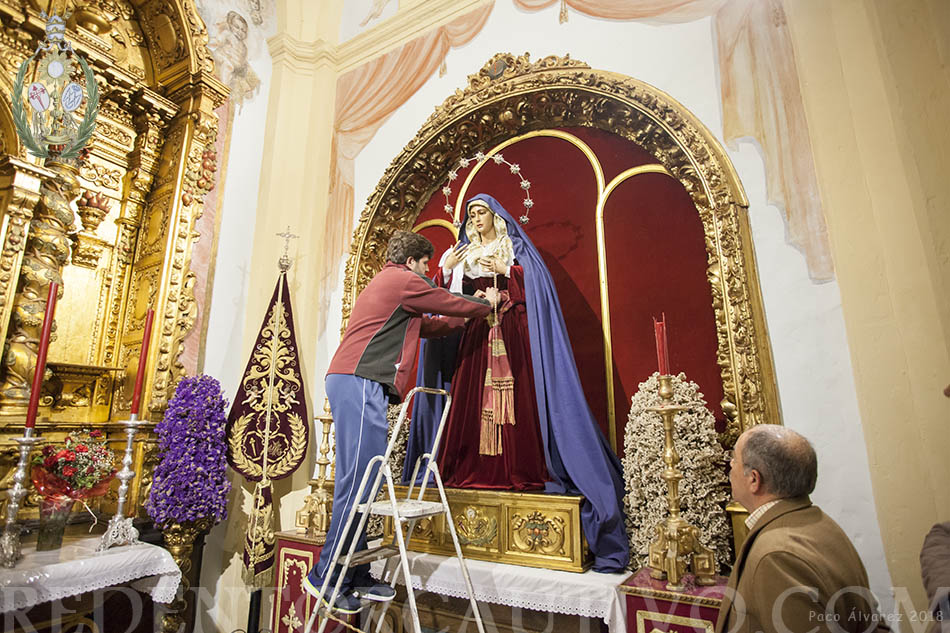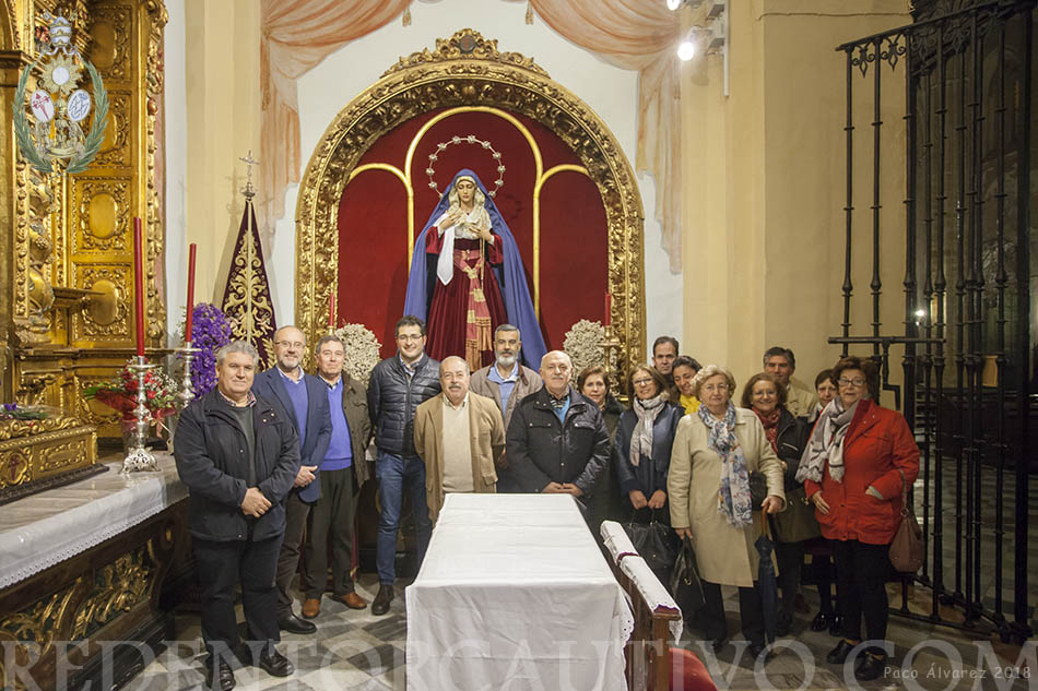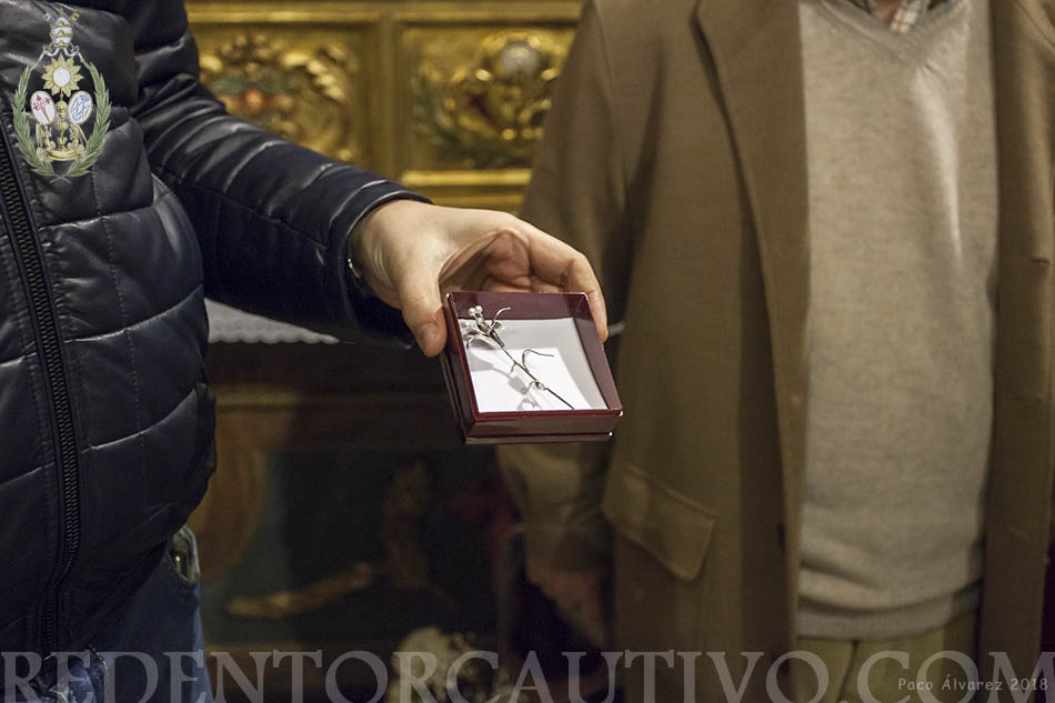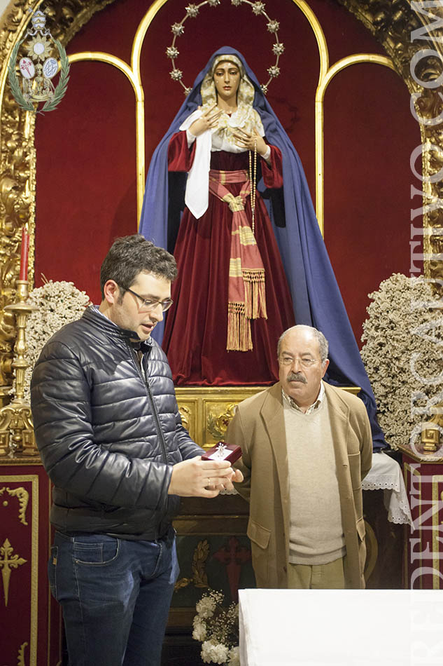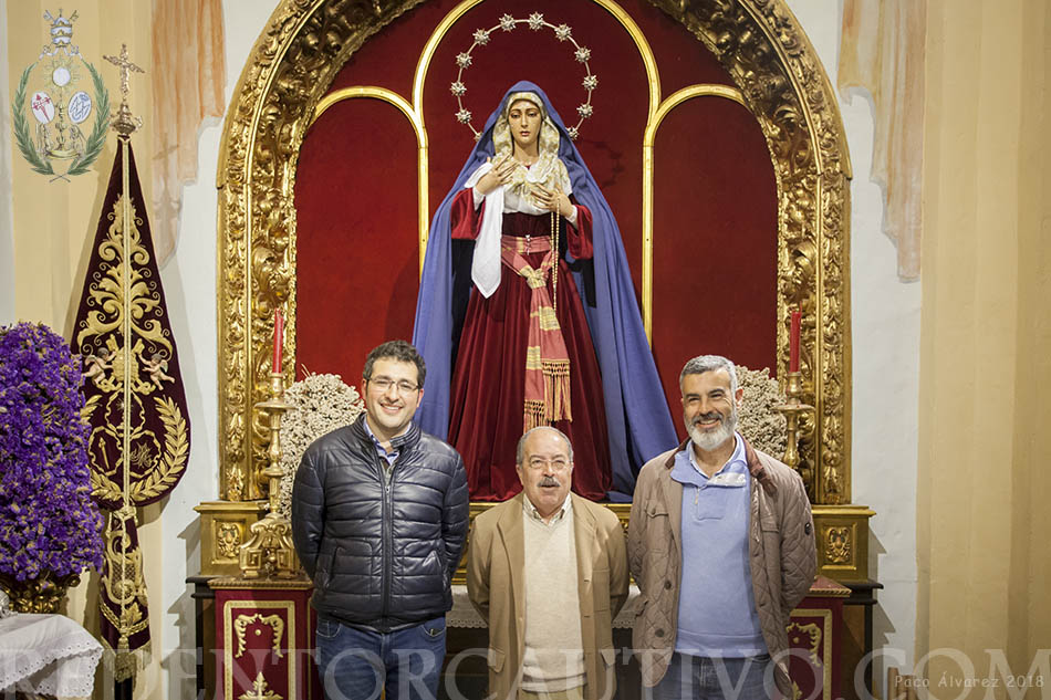 Ofrenda del Pregonero de la Semana Santa de Utrera a la Virgen de Ntra. Sra. de Las Lágrimas A dos días de su pregón de la Semana Santa de Utrera, D. Francisco Pérez Ropero, ha realizado ofrenda a Ntra. Sra. de las Lágrimas, consistente en un broche en forma de flor de violeta de plata, el acto se realizó la tarde noche del viernes 15 de marzo en la Capilla de los Sagrados Titulares de nuestra Hermandad, y en el que estuvieron presentes además del pregonero, el Presidente del Consejo D. Roberto Jiménez y nuestro Hno. Mayor D. Cristóbal García, además de un grupo de hermanos. El pregonero rezó una oración al Stmo. Cristo Ntro. Padre Jesús Redentor Cautivo y otra a Ntra. Sra. De las Lágrimas, a quien se encomendó para que le ayude en su pregón de la mañana del domingo 18 de marzo en el Teatro Municipal Enrique de la Cuadra.