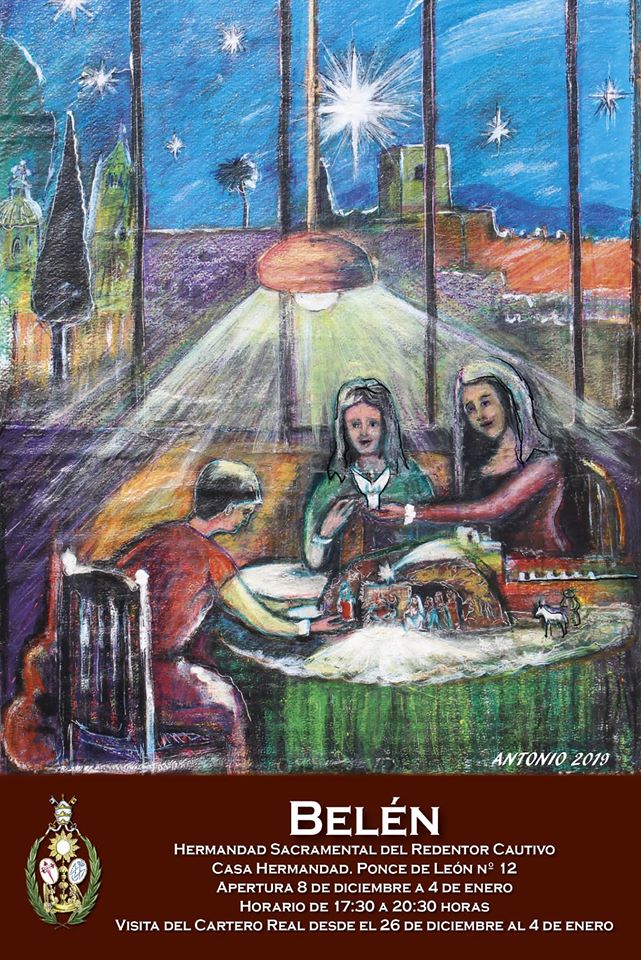 Inauguración Belén de la Casa de Hermandad Este domingo 8 de enero, tras la Función Solemne en Honor a la Inmaculada Concepción, será bendecido el Portal de Belén que como cada año estará instalado en nuestra Casa de Hermandad el Belén. El cartel anunciador es obra de Antonio Menchén (final de página). |